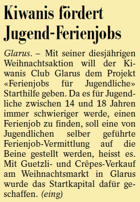 Der Verein Höhenzug um Tobias Baumann und Samuel Gallati initiierte «Ufzgi und Sport Glarnerland». Höhenzug betreibt auch die Kinderbaustelle Luchsingen. Nach Bilten startet das Angebot im kommenden Jahr in einer weiteren und 2023 schliesslich in der dritten Glarner Gemeinde. Die Start-Aufwendungen für alle drei Standorte über vier Schuljahre tragen der Kiwanis Club mit 10'500 und der Rotary Club mit 14'000 Franken gemeinsam mit 40'000 Franken aus dem Lotteriefonds. Während Kiwanis das Engagement aus der Sozialkasse bestreitet, wollen die Rotarier die Finanzierung in den nächsten Jahren mit dem Verkauf selbstproduzierter Produkte an den Weihnachtsmärkten in Glarus verdienen. Die Rotarier betreiben am Weihnachtsmarkt Glarus am Samstag und Sonntag, 4. und 5. Dezember 2021, einen Verkaufsstand. www.hoehenzug.ch/ufzgi-und-sport