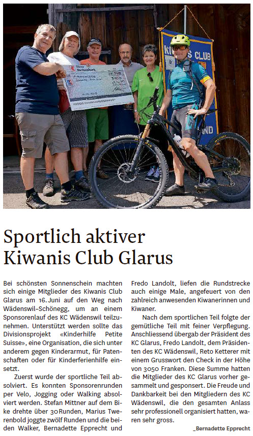 In Bilten startet am 1. Dezember 2021 ein neues Freizeitangebot für Primarschüler:innen im Kanton Glarus. Das Engagement von Kiwanis und Rotary ermöglicht die Finanzierung von «Ufzgi und Sport Glarnerland» zusammen mit dem Lotteriefonds. Die beiden Serviceclubs beteiligen sich insgesamt mit 24'500 Franken über die nächsten vier Jahre an der Anschubfinanzierung der gestaffelten Einführung in je einem Durchführungsort pro Gemeinde.