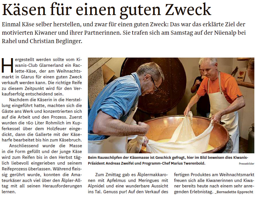 Das Geld wurde mit der Produktion und dem Verkauf des eigenen Käses gesammelt. Die Kiwanerinnen und Kiwaner engagierten sich im Juni 2019 bei der Herstellung des Käses auf der Nüenalp und dessen Verkauf am Weihnachtsmarkt 2019.